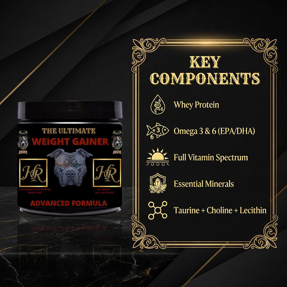 Hench Range Weight Gainer is a premium, all-in-one powdered nutritional supplement designed to help dogs achieve healthy weight gain while supporting muscle development, skin and coat health, immune function, and overall vitality.