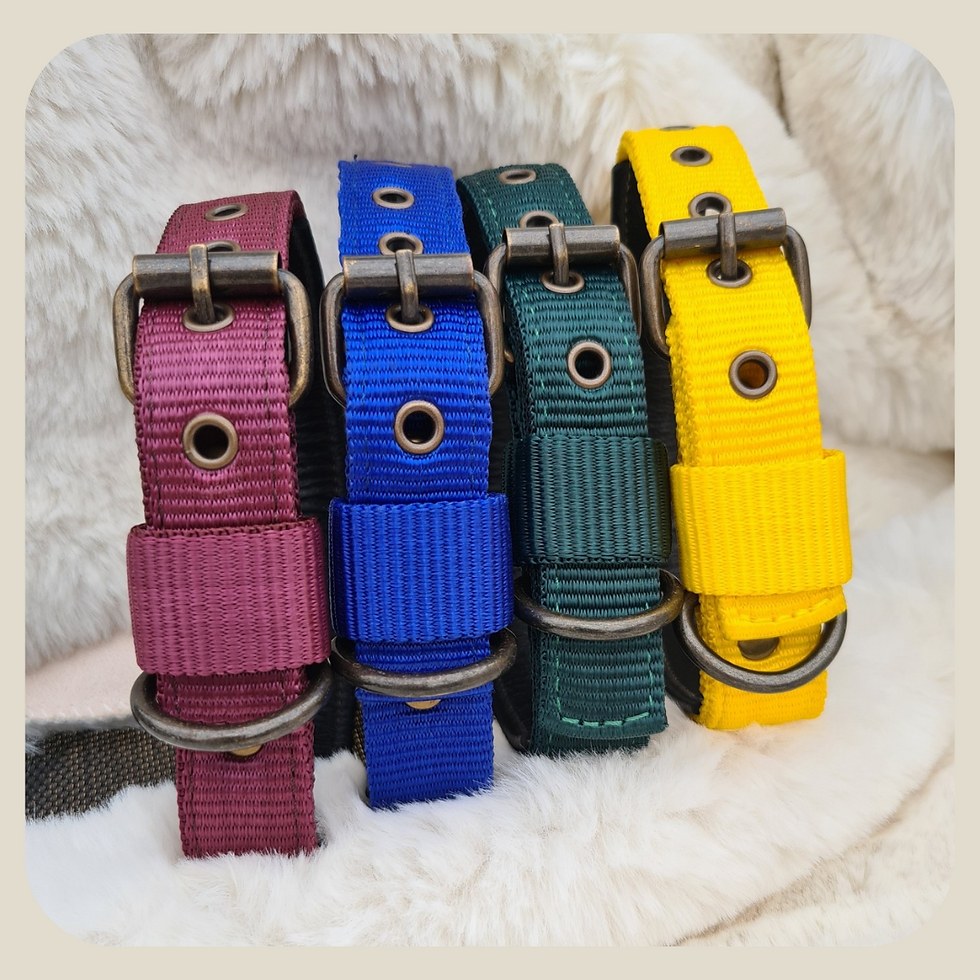Handcrafted by skilled artisans, our collars showcase a stunning combination of woven tartan and leather, merging elegance with resilience. The polished brass fittings add a sophisticated touch, enhanced by striking crystals or brass buttons that make a bold statement. Leather has been handpicked from tannery.